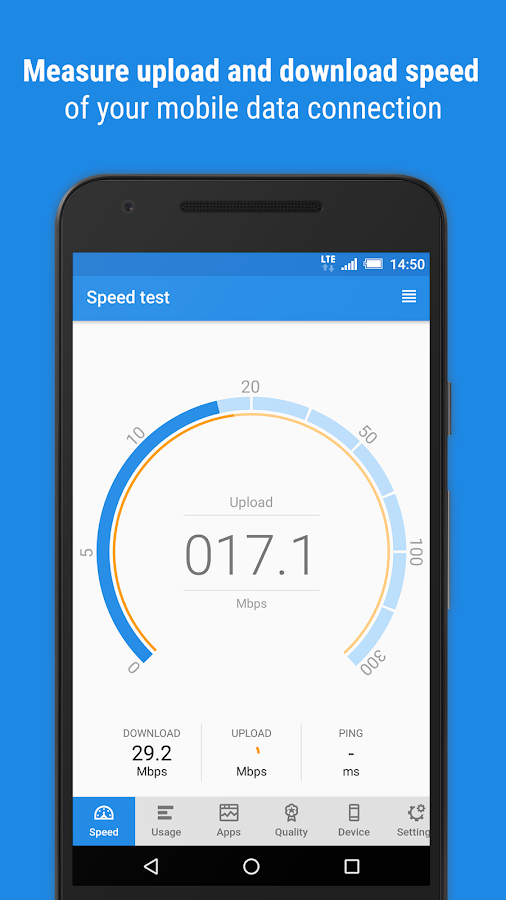 Aplikasi ini memiliki alat uji kecepatan yang canggih yang akan membantu Anda menguji kecepatan koneksi data WiFi atau seluler Anda, termasuk kecepatan upload, download dan ping.